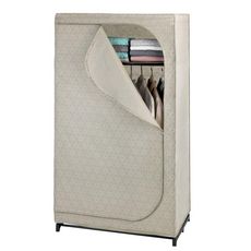 Pratique cette armoire derrière sa housse vous révèlera ses nombreux rangements. Equipée d'une barre de penderie et d'une étagère, vous aurez l'espace nécessaire pour ranger et ordonner vos vêtements. Sa housse protégera vos vêtements de la poussière et les ventilera.