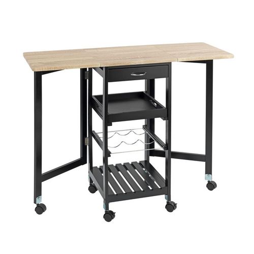 Desserte de cuisine dépliante 6 roulettes - Noir