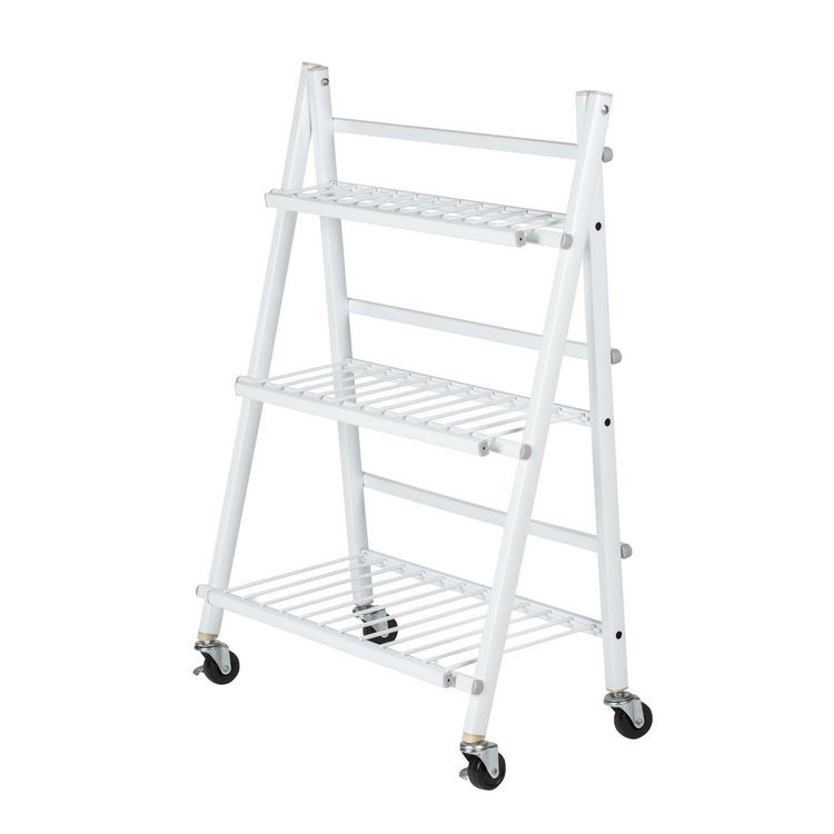 Escalier pliables pour fleurs et plantes avec 4 roues - en métal - Blanc