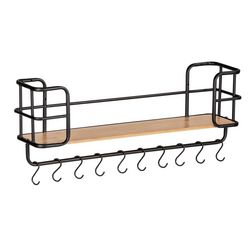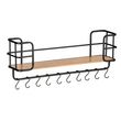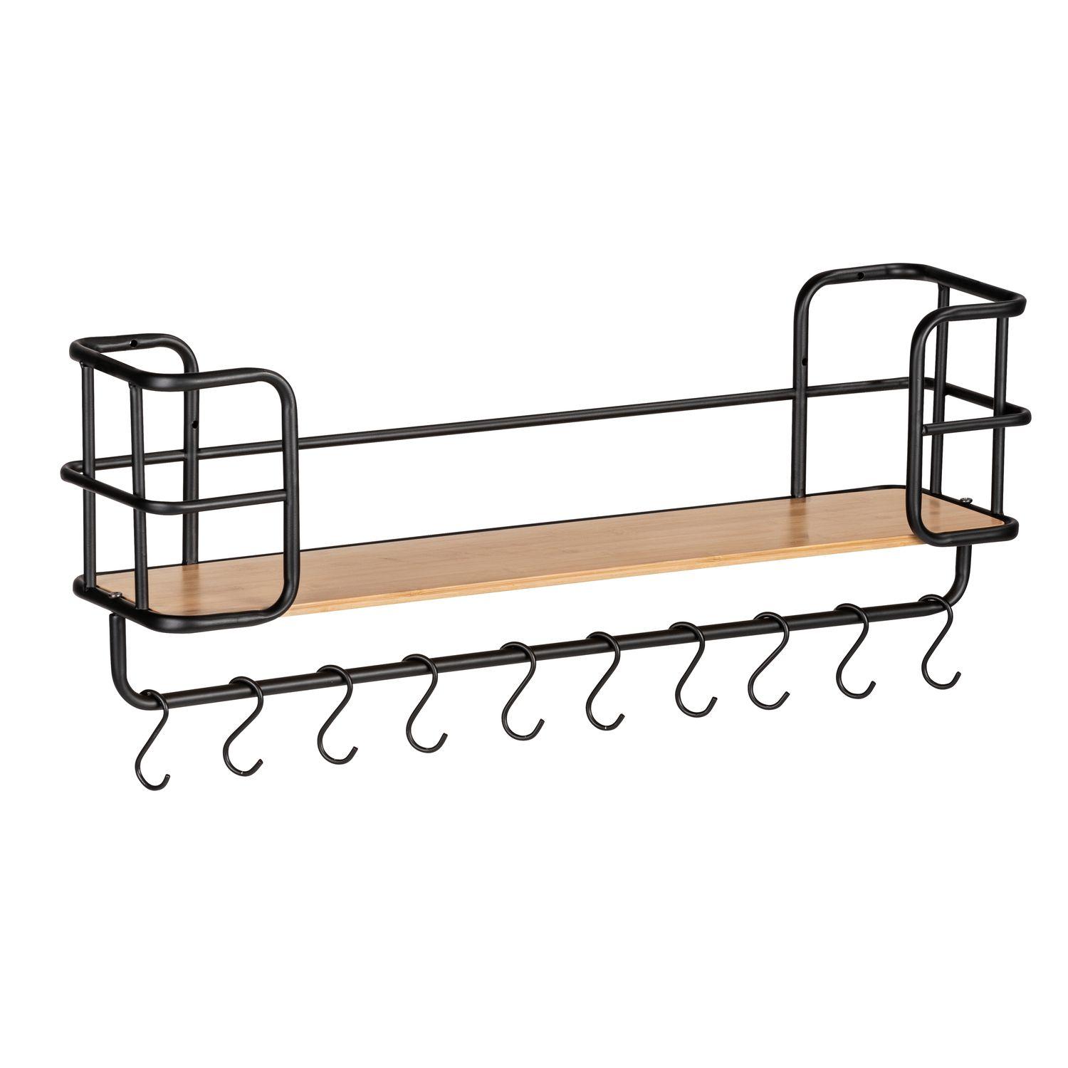 Etagère murale Loft avec tablette et 10 crochets - en Métal et Bambou - Noir et marron