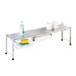 Pratique, cette étagère vous mettra sous la main tout ce qu'il faut pour être plus efficace.FICHE TECHNIQUE- Etagère pour évier en Métal chromé.- Extensible, elle s'adaptera sur tous vos éviers.- Elle vous offrira suffisamment d'espace de rangement pour tous vos ustensiles de cuisine.- Tiroir de ran