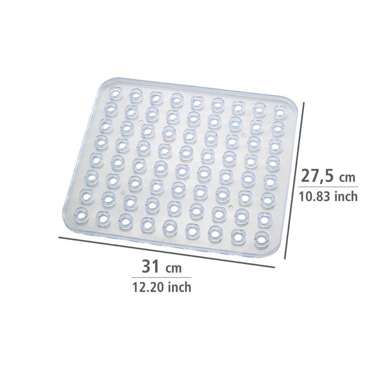 Le fond d'évier Kristall de WENKO est un tapis d'évier lourd extra-épais qui protège l'évier contre les éraflures tout en ménageant la fragilité des verres et et de la vaisselle. Sa technologie spéciale réduit considérablement les projections d'eau lors du remplissage de l'évier. Il permet de poser les verres précieux en douceur dans l'évier et réduit les bruits de lavage. Le fond d'évier est parfait pour les éviers rectangulaires et approprié pour le lavage en machine.