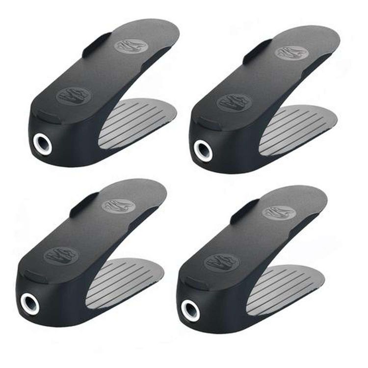 Optimisez l'espace de votre armoire tout en préservant vos chaussures grâce à notre set de 4 empileurs de chaussures intelligents. Conçu pour créer un rangement pratique, cet accessoire transforme votre espace de rangement tout en protégeant vos chaussures préférées. Grâce à lui, vos chaussures pourront être facilement empilées par paire, offrant ainsi un moyen simple d'optimiser l'espace dans vos armoires. Cette méthode garantit non seulement un gain de place, mais elle protège également vos chaussures contre les rayures et les pressions. Pour une manipulation aisée, un trou de préhension est intégré au porte-chaussures. De plus, un dispositif de retenue supplémentaire sur les côtés et à l'arrière assure que vos chaussures restent fermement en place.