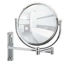 Une synthèse de fonctionnalité et de design esthétique, voilà ce qu'offre ce miroir grossissant mural. Idéal pour se maquiller, le miroir propose en plus de la surface de miroir 1:1 à la face avant, un grossissement de 5x à la face arrière. Elégant, il est progressivement orientable, repliable et réglable en hauteur.