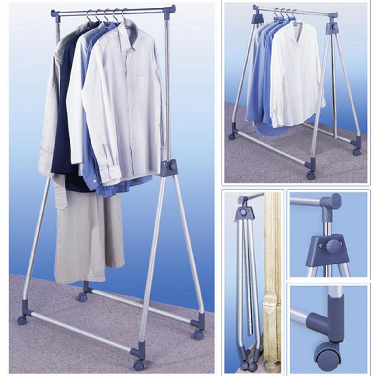 - Après usage, la penderie se replie pour se ranger sans encombrer.