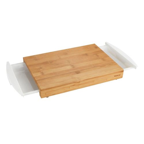 Cette planche tendance en bambou est idéale pour découper vos aliments ou pour présenter vos préparations culinaires. Equipée de tiroirs facilitant le collecte des déchets.