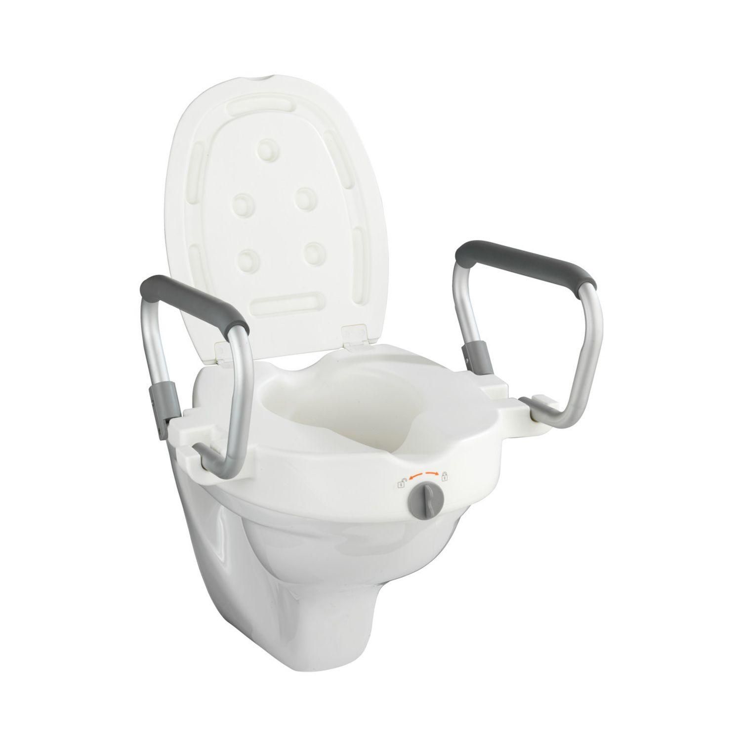Soulagez vos hanches et genoux grâce à ce rehausseur d'abattant WC muni de poignées offrant plus de confort et sécurité.
