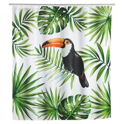 Rideau de douche tropical Toucan - Polyester - 180 x 200 cm - Blanc