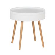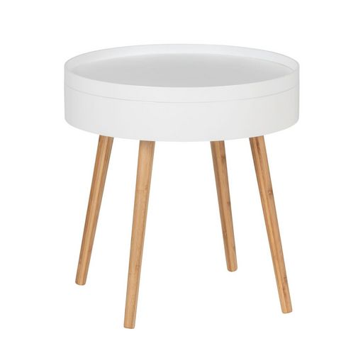 Table d'appoint ronde avec couvercle en MDF et Bambou - Blanc et Beige