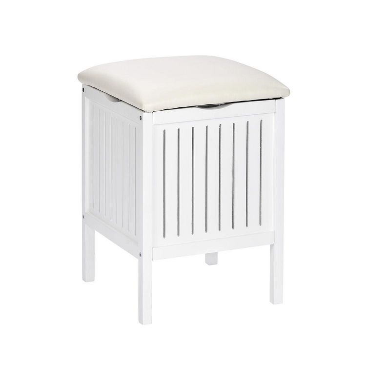 - Ce tabouret de salle de bain offre sous son siège un vaste d'espace pour le rangement de linge.