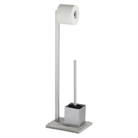 L'aspect granite de ce valet WC apportera un charme naturel à votre salle de bain.FICHE TECHNIQUE- Valet WC en acier inox.- Base en polyrésine à l'aspect de granite.- Equipé d'un porte-rouleaux et d'un porte-brosse WC.- Brosse WC hygiénique à tête remplaçable.- Grande stabilité.CARACTERISTIQUES TECH