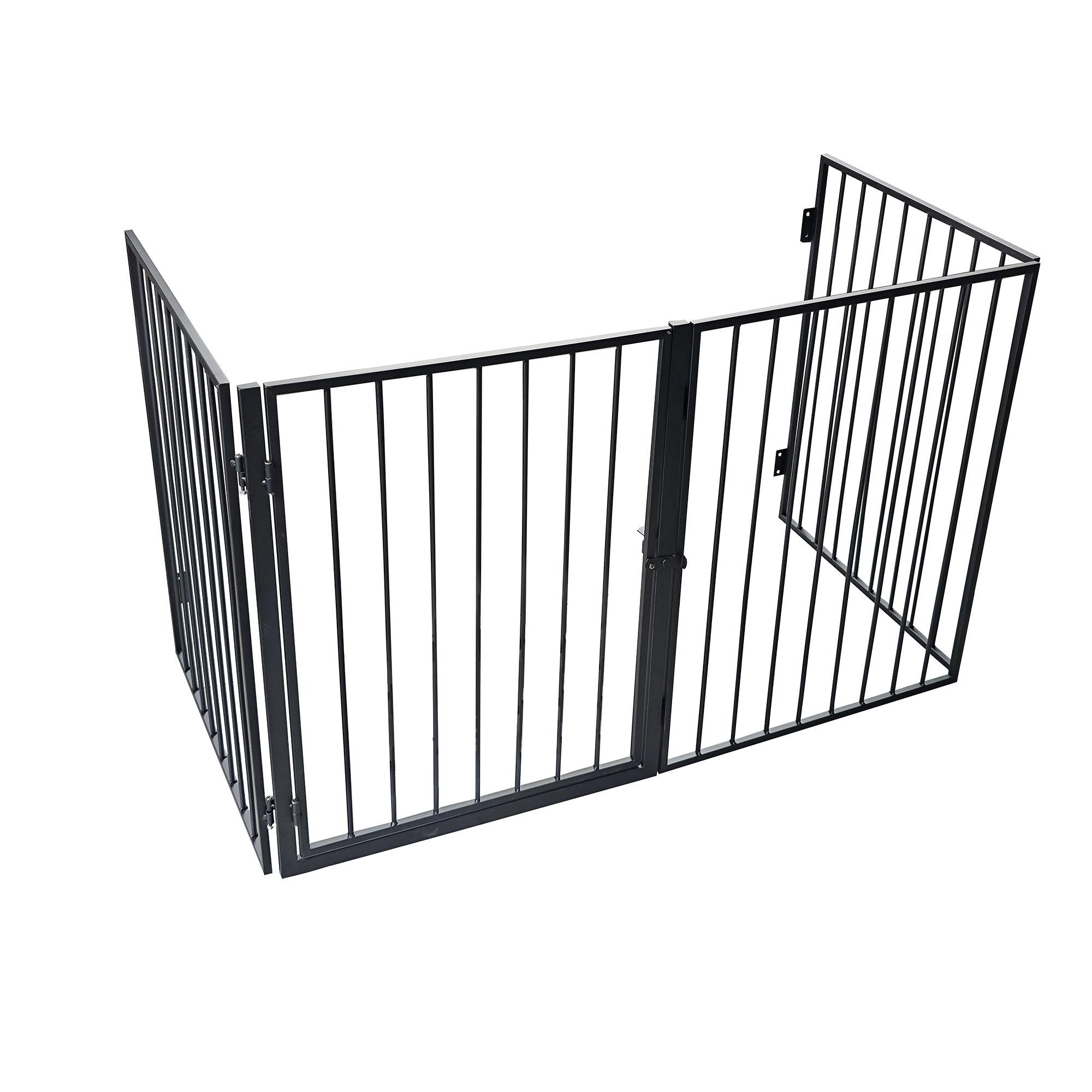 Description détaillée de la barrière de protection en métal WERKA PRO 4 panneauxUnivers de la maisonProduit: Barrière de protectionMarque: WERKA PROMatière: AcierDimensions: 240 cm x 76 cm de hauteur4 panneaux de 60 cm x 76 cmdont 1 panneau avec porte d'accès et système de fermetureFixation murale s
