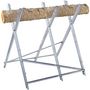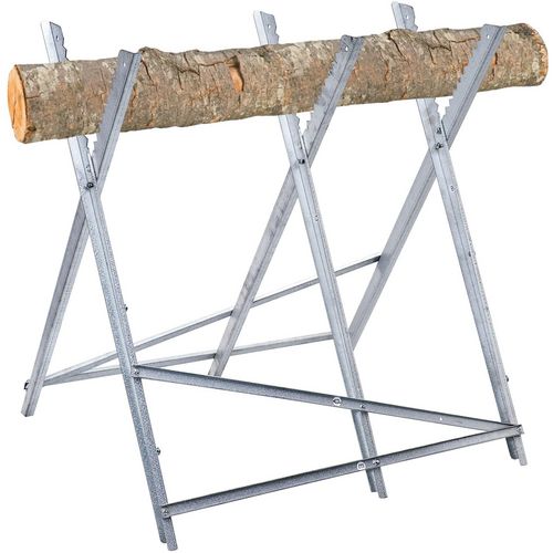 Produit: Chevalet à bûche Univers: jardin et bûcheronnage Utilisation: bûcheronnage Matière: acier galvanisé Épaisseur des profilés: 1,2 mm Capacité de charge: 150 kg Dimensions du chevalet: largeur 81 cm / longueur 82 cm / hauteur 79 cm Caractéristique: chevalet à 3 pieds / dents sur les mâchoires Marque: WERKA PRO