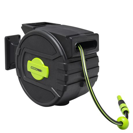 Informations produit:Produit: Dévidoir mural automatiqueUsage: facilite l'arrosageUtilisation: support mural pour tuyau d'arrosageDimensions: P 54 x L 23 x H 35 cmLongueur tuyau: 20 m + 2 m d'alimentationDiamètre du tuyau: 1/2 (12,5 mm)Pression d'utilisation: 2/4 barAngle pivotement support mural: