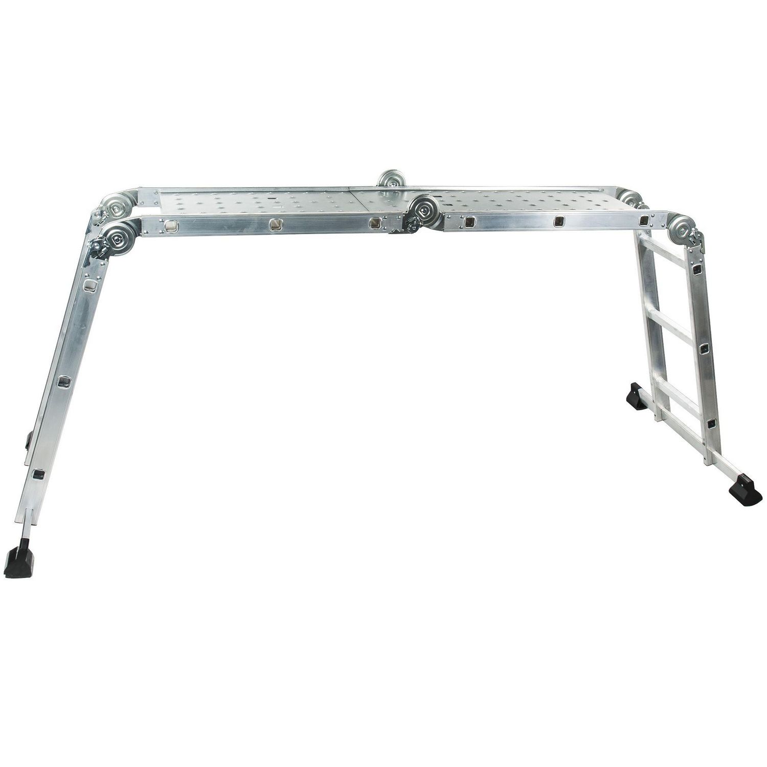 Informations produit: Produit: Échelle en aluminium Caractéristiques: Échelle transformable en 7 différentes positions Poids: 16,3kg Echelle aux normes EN 131Échelle livrée avec ses deux plateaux (pour utilisation en mode échafaudage)Échelle 12 barreauxCharge maxi: 150 kgGarantie 1 an Marque: WERKA