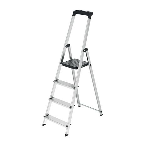 Escabeau 4 marches avec plateforme de travail WERKA PRO - Praticité et SécuritéMatériaux de Haute QualitéFabriqué en aluminium léger avec une plateforme en acier peint, cet escabeau allie robustesse et facilité d'utilisation. La plateforme en plastique offre une surface de travail stable, idéale pou