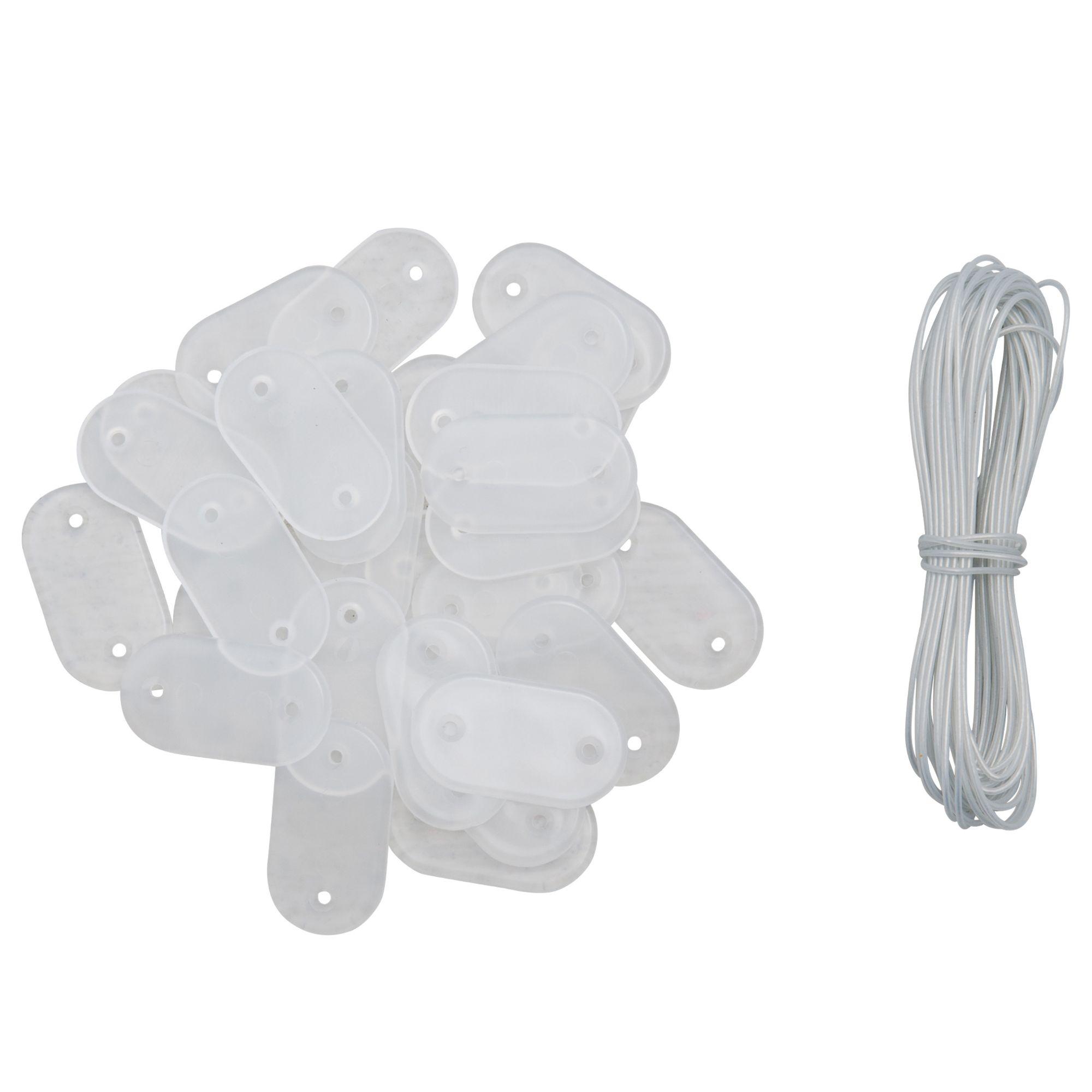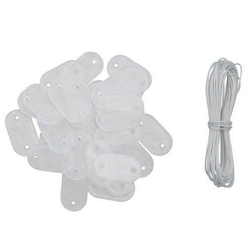 Le kit comprend 30 fixations transparentes et 4 mètres de fil de fer galvanisé. A la fois solides et discrètes, ces fixations sont très faciles à poser!