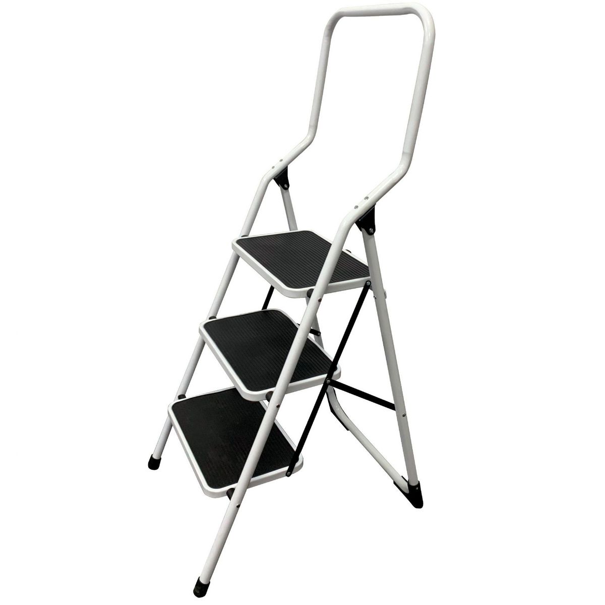 Informations techniques:Produit: Marchepied Univers: BricolageUtilisation: Marchepied pliable Matériau: Métal peint Matériau: Tubes en acier laqué époxy Coloris: blanc / noirCaractéristiques: avec garde corps Encombrement au sol ouvert: 48,8 x 65 cm Dimensions marchepied plié: 48,8 x 14,6 x 139,1 cm