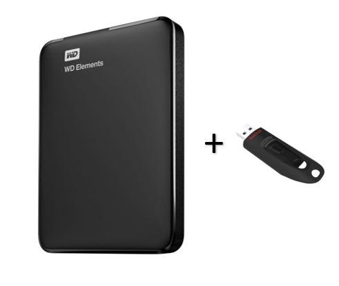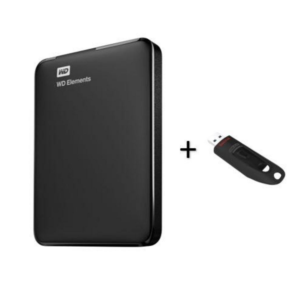 Disque dur externe 2 To Noir + Clé USB Sandisk 128 Go - USB 3.0