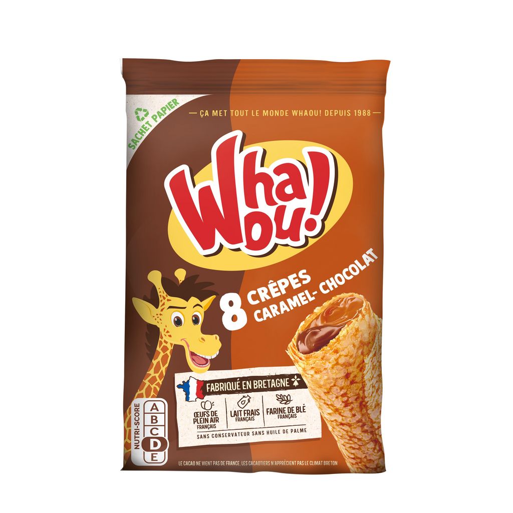 Découvrez les crêpes Whaou! caramel-chocolat avec leur double fourrage ultra-gourmand et fondant.