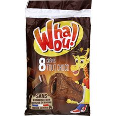 UNE DÉLICIEUSE CRÊPE TOUT CHOCOLAT ÉLABORÉE SANS HUILE DE PALME ET SANS CONSERVATEUR, PRÉPARÉE AVEC DU BON LAIT FRAIS LIVRE TOUS LES JOURS ET DES ŒUFS EXTRA FRAIS FACILE À TRANSPORTER DANS SON SACHET FRAÎCHEUR, LA CRÊPE WHAOU! ACCOMPAGNE VOS ENFANTS DANS LEURS NOMBREUSES ACTIVITÉS.