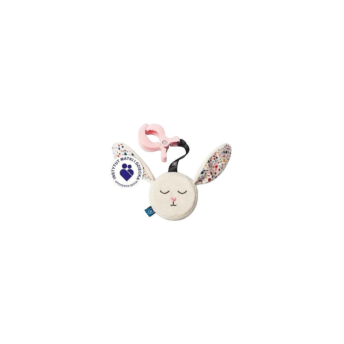 Le Whisbear Szumiący Króliś Felcia en ecru est une peluche interactive conçue pour apaiser les bébés dès la naissance. Cette peluche légère, fabriquée en tissu de haute qualité, diffuse un bruit blanc réconfortant pour aider à calmer le bébé lors des siestes ou des promenades. Elle est munie d'un cl