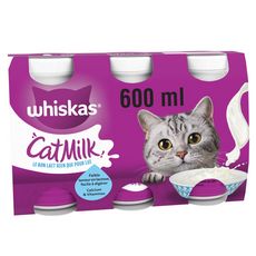 Le lait pour chats adultes et chatons Whiskas® Cat Milk est disponible en format bouteille 3x200 ml.