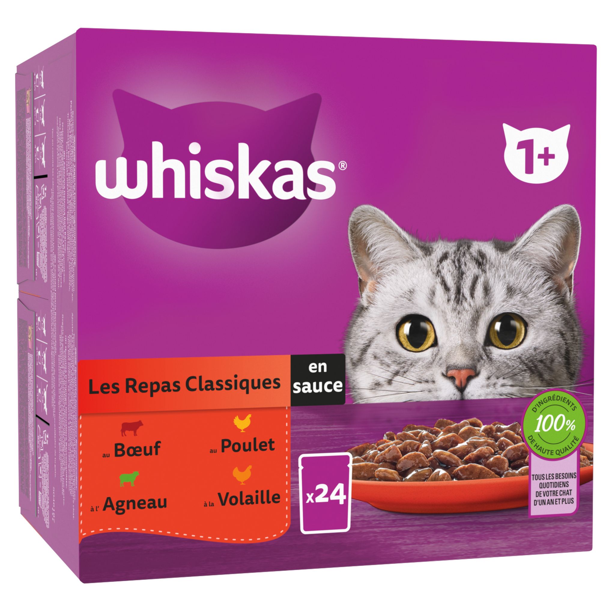 WHISKAS Sachets fraîcheur Les Repas Classiques en sauce 4 variétés pour chat adulte 24x85g