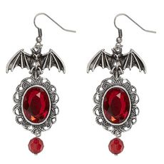 Contenu : une paire de boucles d'oreilles chauve-souris avec des pierres précieuses rouges Il est nécessaire d'avoir les oreilles percées pour porter ces boucles d'oreilles. Age minimum : la naissance