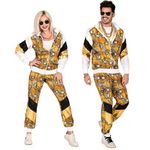 XL - Contenu : 1 veste, 1 pantalon. Ce déguisement se compose d'une veste et d'un pantalon assorti. Le pantalon est resserré au niveau des chevilles. Il possède une bande noir et une bande doré sur chaque jambe. Il y a un motif avec des cranes de squelette dorés. La veste possède les mêmes motifs que le pantalon. Les manches sont blanches et resserrées au niveau des poignets. La veste peut se fermer à l'aide d'une fermeture éclair. Age minimum : la naissance