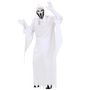 L - Contenu : 1 tunique, 1 masque avec capuche.Ce déguisement se compose d'une longue tunique blanche à manches longues. Il y a des effets de déchirures sur le bas de la tunique et le bas des manches. Le déguisement vient avec un masque avec capuche qui s'enfile comme une cagoule. Le masque est noir avec un visage de fantôme blanc ouvrant la bouche comme s'il hurlait. Age minimum : la naissance