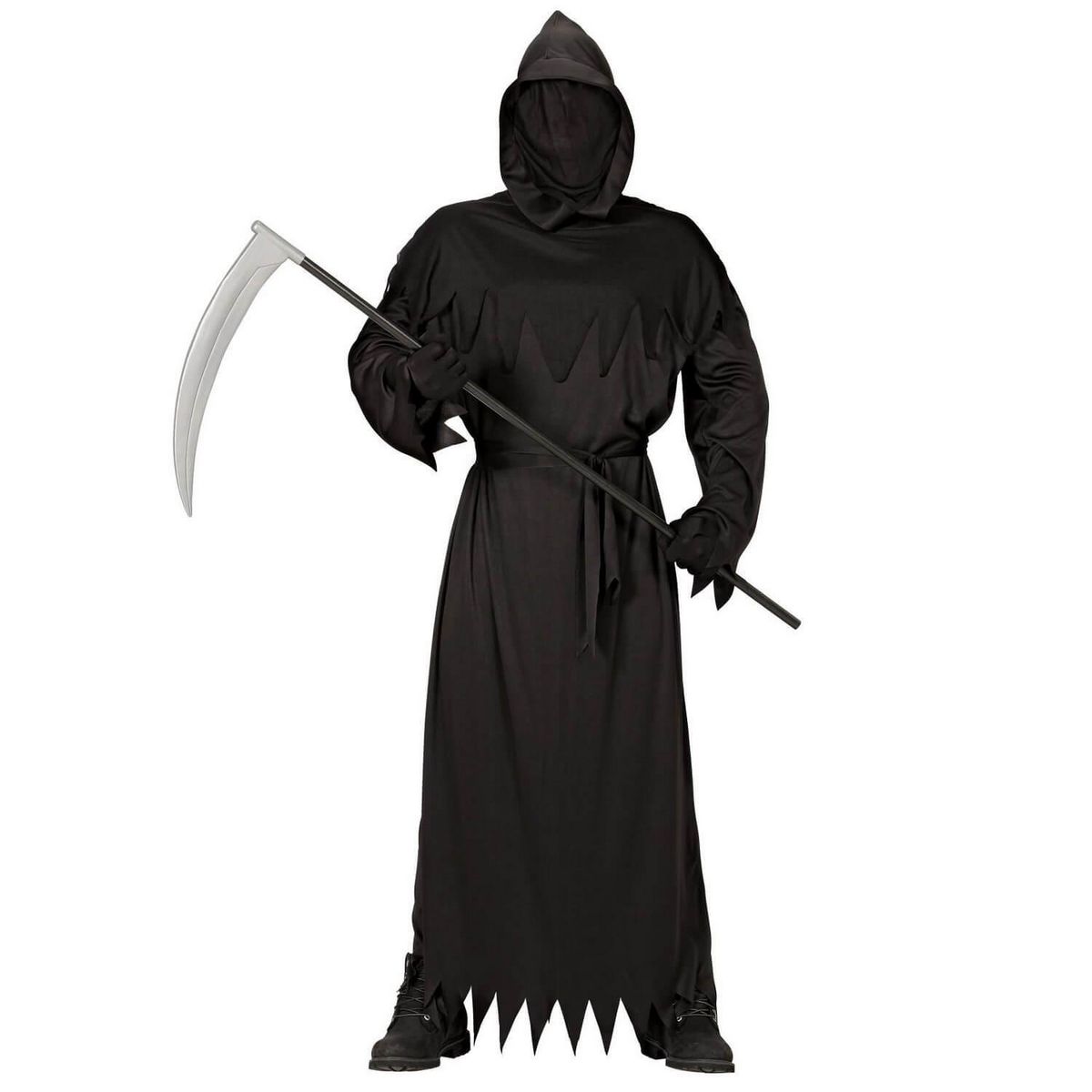 S - Contenu : 1 tunique avec capuche et masque, 1 ceinture.Ce déguisement comprend une tunique entièrement noire. Elle possède des manches longues. Le bas des manches et de la tunique sont découpés en pointe pour faire un effet déchiré. La tunique peut être resserrée à la taille avec une ceinture en