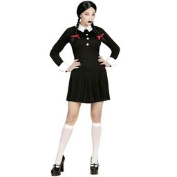 En savoir +M - 38/40 - Contenu : 1 robe. Ce déguisement se compose d'une robe noire à manches longues. Elle possède des détails blanc au niveau du col et des manches qui sont retroussées. Il y a 3 boutons blanc sur le bustier et le jupon est légèrement plissé. Age minimum : la naissance