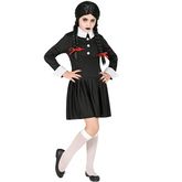 En savoir +8/10 ans (128 à 140 cm) - Contenu : 1 robe. Ce déguisement se compose d'une robe noire à manches longues. Le jupon est plissé et le haut de la robe possède 3 boutons blancs. Il y a un grand col blanc et les manches sont retroussées avec des détails blancs. Age minimum : la naissance