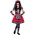 14/16 ans (156 à 174 cm) - Contenu : 1 robe, 1 paire de manchettes, 1 serre-tête avec voile.Ce déguisement se compose d'une robe rouge et noire sans manches. Le jupon de la robe est rouge satiné. Il y a un effet de tablier avec des dessins de calaveras colorés. On retrouve le même motif sur le bas d