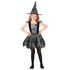 2/3 ans (86 à 96 cm) - Contenu : 1 robe et 1 chapeau. Ce déguisement contient une robe noire et argentée. Le jupon est noir et coupé en pointe sur le bas pour un effet déchiré. Il présente des détails argenté avec des dessins de toiles d'araignées et d'arbre sans feuilles. Le bustier est noir avec u