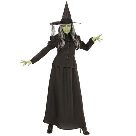 M - 38/40 - Contenu : 1 gilet, 1 jupe, 1 chapeau.Ce déguisement se compose d'une longue jupe noire. Un gilet noir est également inclus. Il possède des boutons sur le devant ainsi qu'un petit col. Le gilet est à manches longues et les épaules sont bouffantes. Un chapeau noir pointu vient compléter le look. La base du chapeau est entourée d'un tissu avec un motif toile d'araignée. Age minimum : la naissance