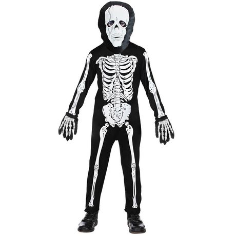 4/5 ans (104 à 110 cm) - Contenu : 1 costume et 1 masque.Ce déguisement possède une combinaison entièrement noire avec un dessin de squelette blanc. La combinaison de comporte pas les pieds. Un masque noir avec un crâne de squelette blanc vient compléter le déguisement. Le masque est en tissu et s'e