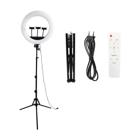 Le trépied RL 18 est simple d'utilisation, ajustez votre trépied professionnel avec anneau lumineux jusqu'à 2m de haut. Ensuite branchez le n'importe où, grâce à son câble d'alimentation de 2 mètres de long. installez votre ou vos smartphones sur un des 3 supports. Choisissez la couleur de la lumière (réglable en continu) et l'intensité de la lumière (réglable en continu) grâce à sa télécommande, vous pouvez aussi choisir l'orientation de la lampe (rotation à 180°). Il ne vous reste plus qu'à prendre la télécommande Bluetooth et prendre la pose (jusqu'à 10m de distance) pour réaliser votre selfie (ou vidéo).