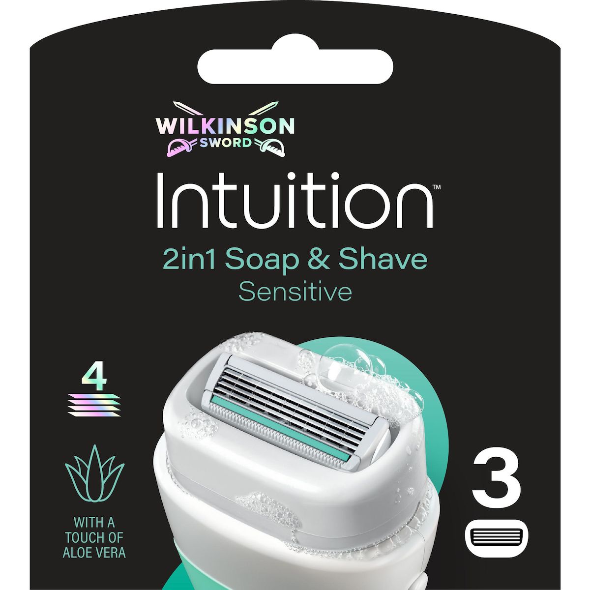 Lames de rasoir pour femmes Wilkinson Sword Intuition 2-en-1 Sensitive Care, lames de rasoir, enrichies à l’aloe vera, rasoirs pour la routine de soin, Pack de 3 recharges de lames de rasoir