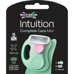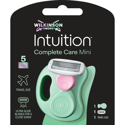Le rasoir 5 lames Complete Mini d'Intuition by Wilkinson Sword est idéal pour les déplacements grâce à son manche ergonomique et son étui de voyage. Le pack contient un manche, une lame de rechange et un étui de voyage.