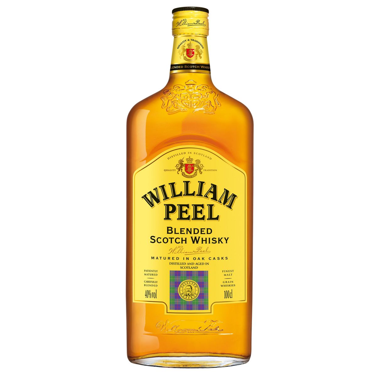 WILLIAM PEEL est un blended Scotch Whisky élaboré dans le respect des traditions écossaises. Vieilli 3 ans en fûts de chêne, il est le fruit d'un assemblage de whiskies de malts et de whiskies de grains soigneusement sélectionnés qui lui donne son caractère unique : rond et parfaitement équilibré.