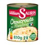 Choucroute précuite (69%), eau, saindoux, Riesling (0,5%), sel, arôme naturel, baies de genièvre, graines de cumin.