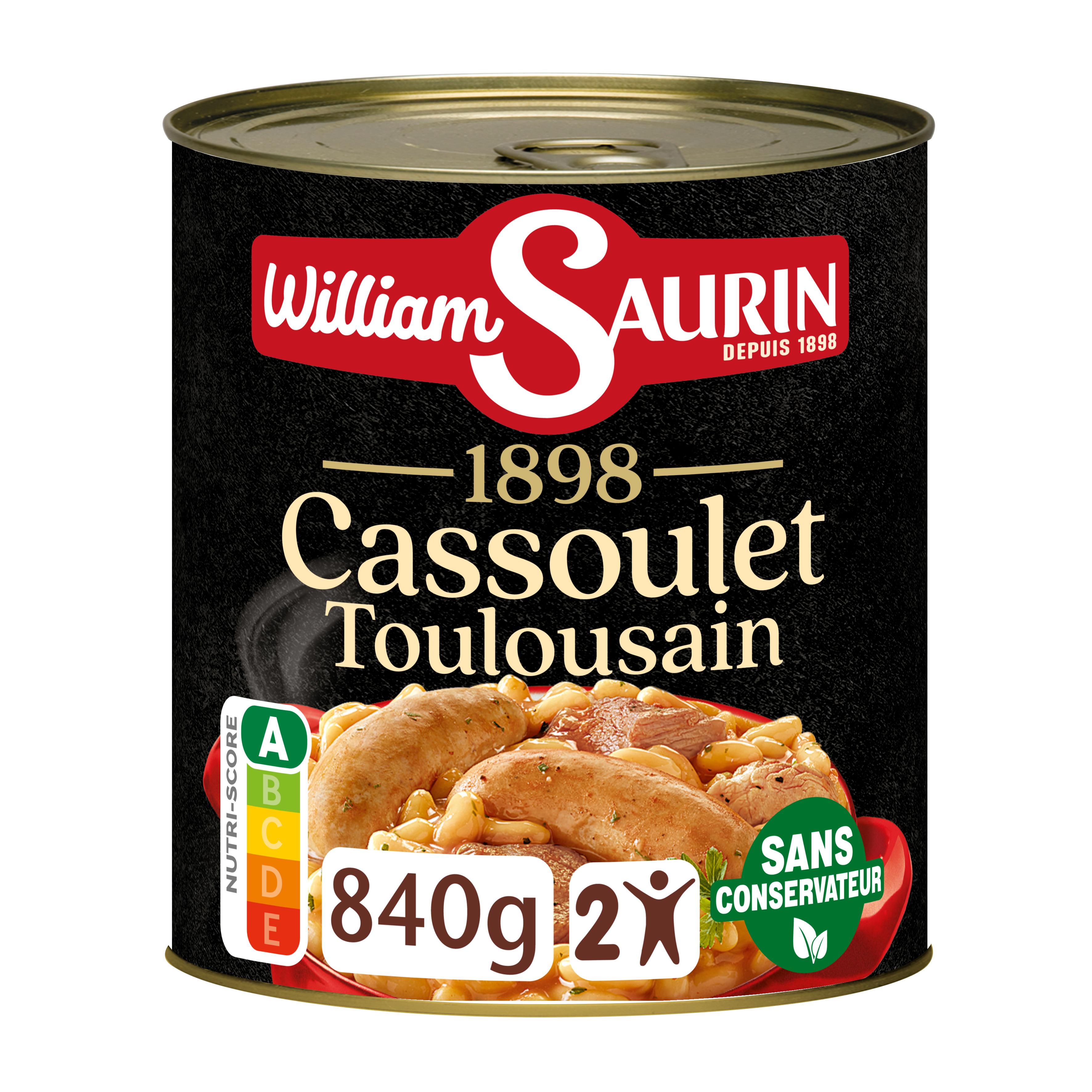 Haricots blancs précuits (33%), eau, saucisses de Toulouse (16%) (viande de porc, gras de porc, eau, sel, épices, arôme naturel, boyau naturel), épaule de porc traitée en salaison (10%) (épaule de porc, eau, sel, stabilisants : triphosphates), graisse de canard (2%), triple concentré de tomate, persil, arômes naturels, sel, épaississant : gomme xanthane. Viande d'origine Union Européenne