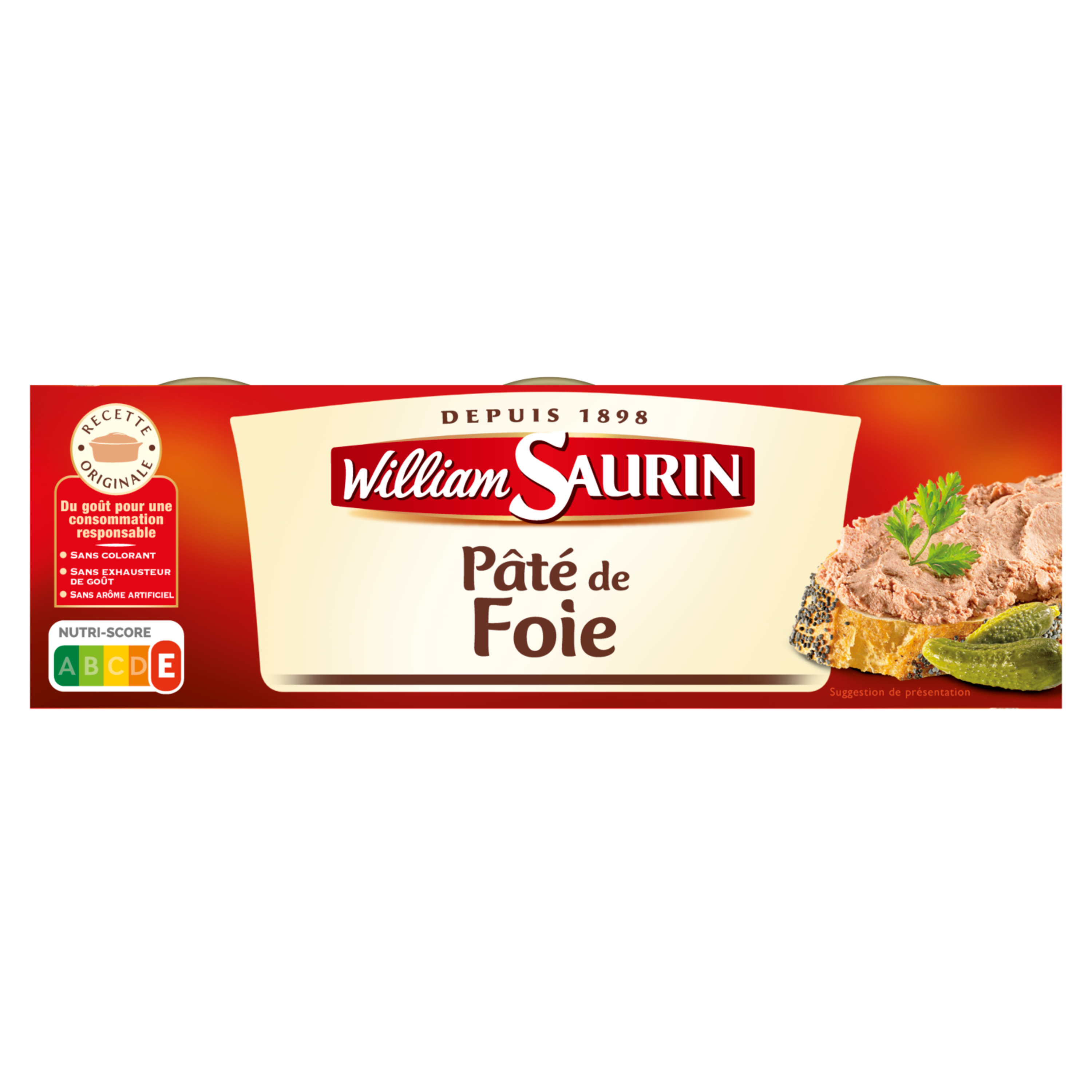 Ce pâté à la viande d'origine UE est préparé sans nitrite, ce qui lui donne une couleur naturelle, la véritable couleur d'un pâté. Cuisinés dans le Sud Ouest selon des recettes traditionnelles à partir d'ingrédients sélectionnés, les pâtés William Saurin sont des portions pratiques et idéales pour des plaisirs savoureux à tout moment de la journée ! Pour varier les plaisirs, William Saurin vous invite à découvrir sa gamme gourmande… Permettre à tous de bien manger Porc d'origine UE Sans conservateur Sans arôme artificiel Sans colorant