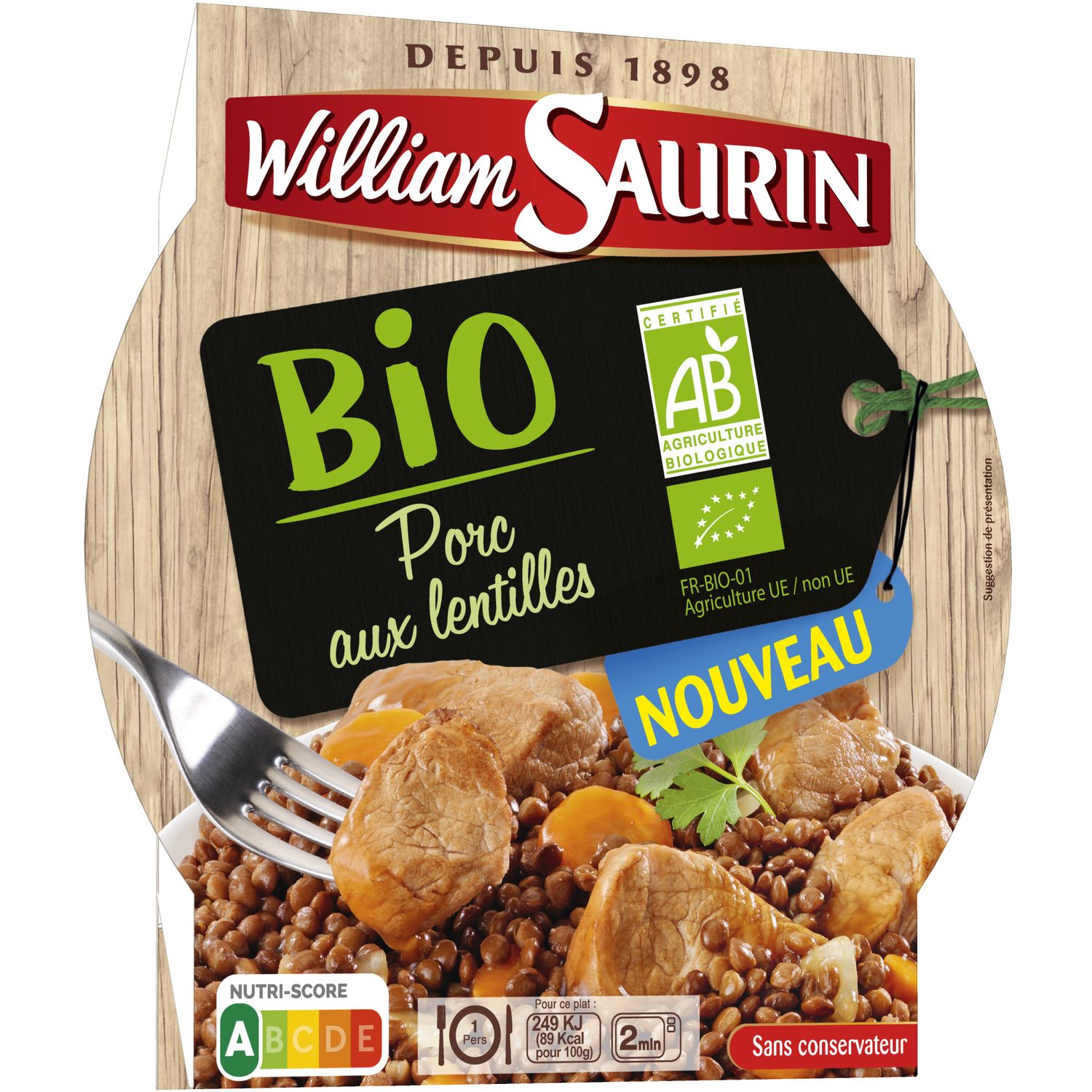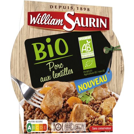Porc au lentilles bio sans conservateur en barquette