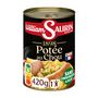 Ingrédients: Chou précuit 28%, eau, viande de porc traitée en salaison (viande de porc, eau, sel, amidon modifié), saucisse fumée (viande de porc, gras de porc, eau, sel, plasma de porc, fibres de pois), carottes, haricots blancs précuits, pommes de terre, poireaux, navets, sel. Total charcuterie et viande 27% Viande d'origine Union Européenne