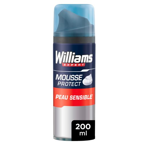 La mousse à raser homme Williams Peau Sensible, au format 200 ml, protège et apaise votre peau au moment du rasage