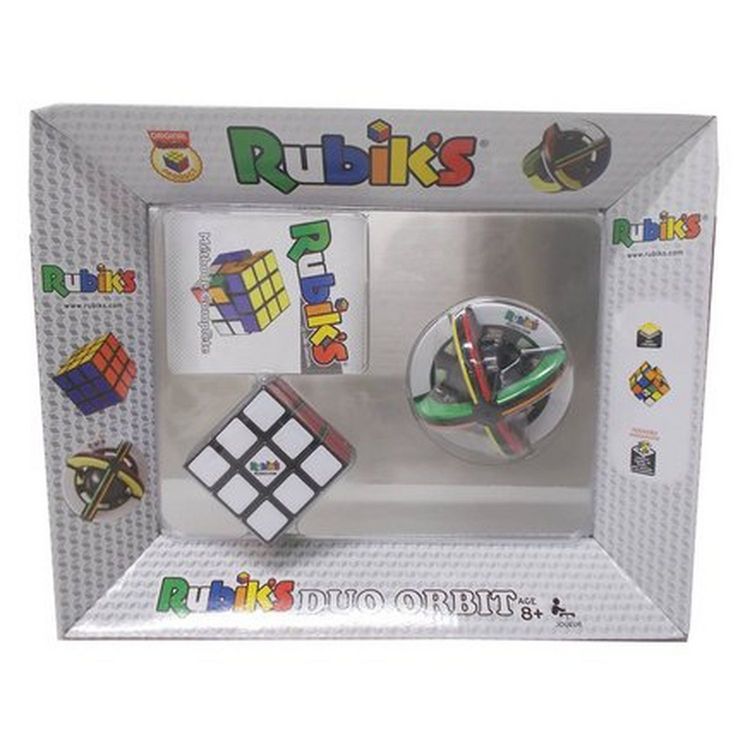 Le coffret Rubik's Duo Orbit contient un Rubik's Cube 3x3 avec une méthode complète indiquant tous les mouvements nécessaires à sa réalisation mais aussi un casse-tête Rubik's Orbit !