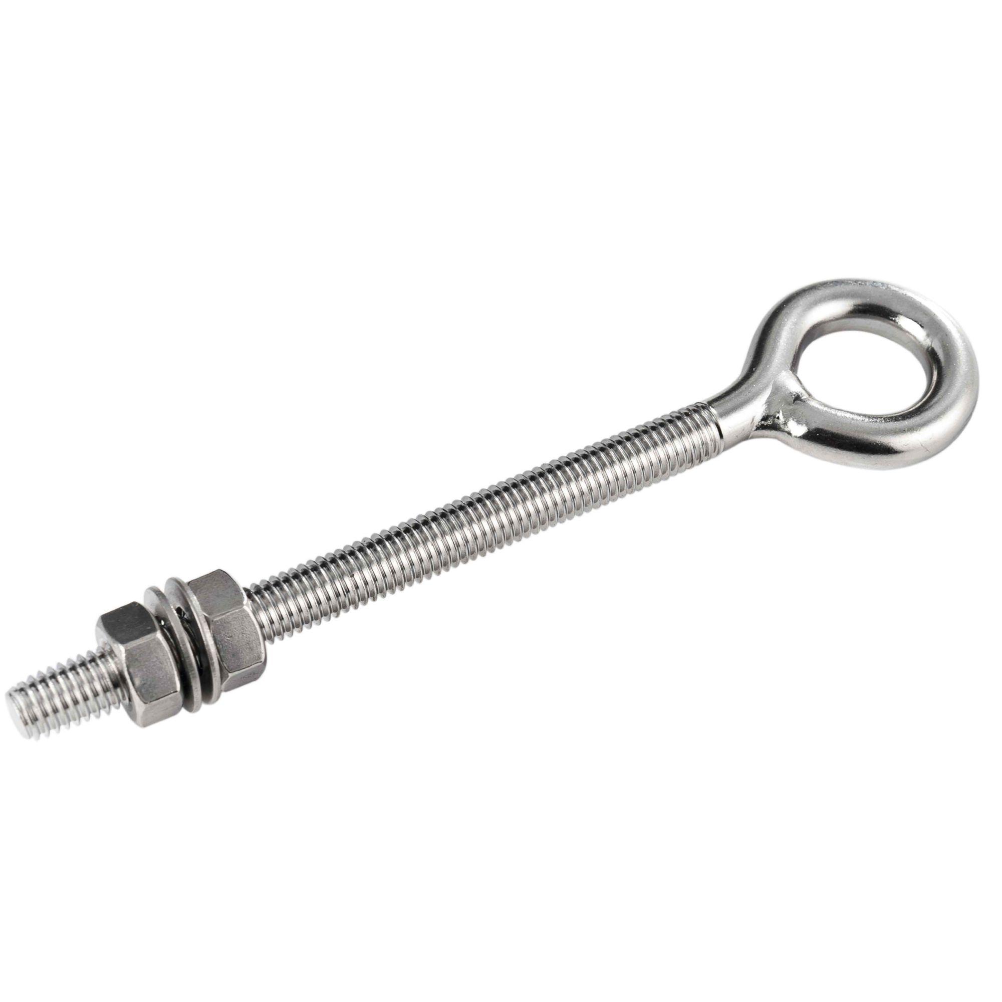 Piton à œil 8mm pour arrimer une toile d'ombrage, un parasol ou un barnum à un point fixe solide et définitif dans un mur ou un structure bois ou métal. Piton en inox livré avec 2 écrous et 2 rondelles pour une longue durée de vie et une fixation durable et rapide.